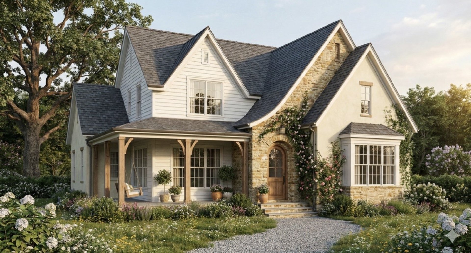 บ้านสไตล์อิงลิชคอทเทจ ได้แรงบันดาลใจจากบ้านชนบทในประเทศอังกฤษ โดดเด่นด้วยเสน่ห์โรแมนติกและรายละเอียดที่มีเอกลักษณ์